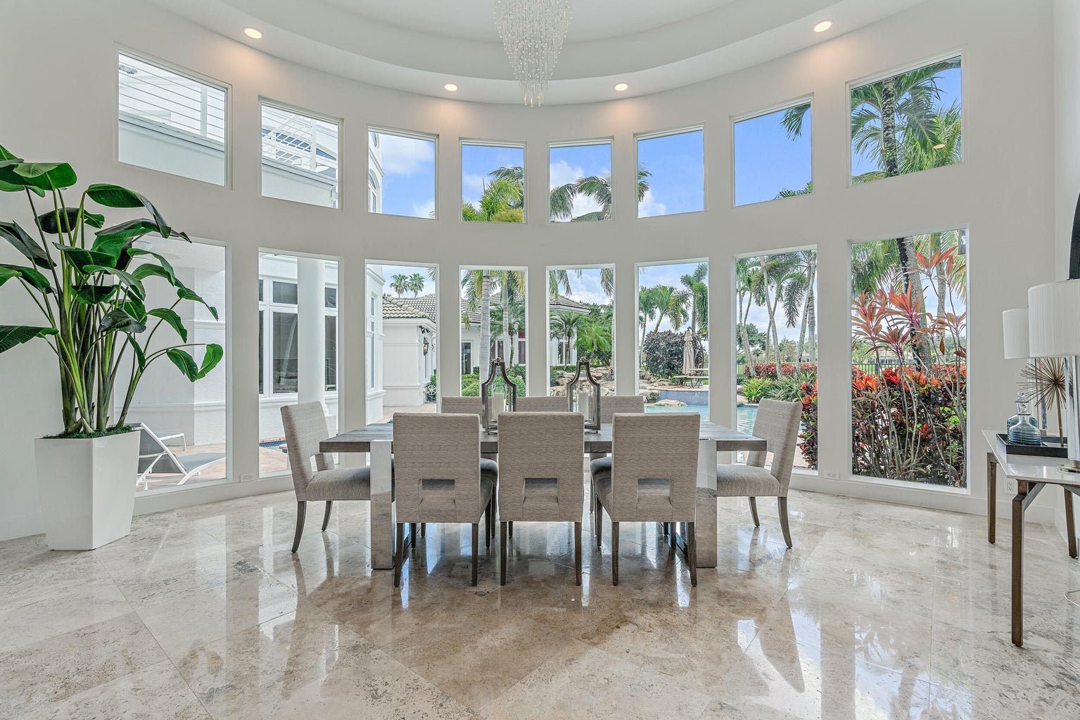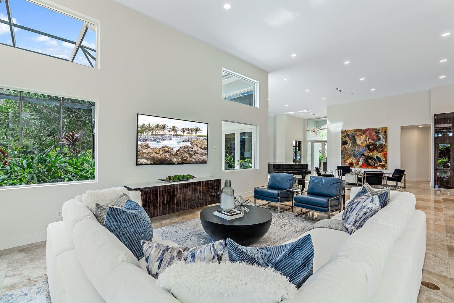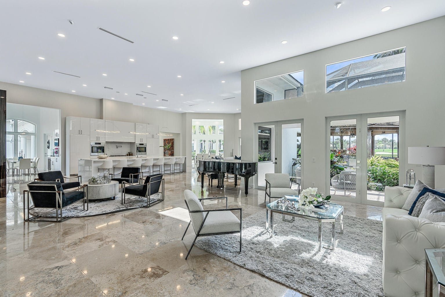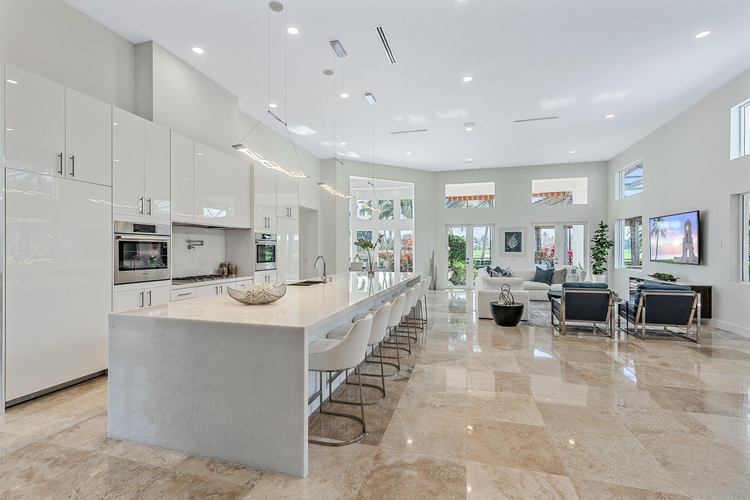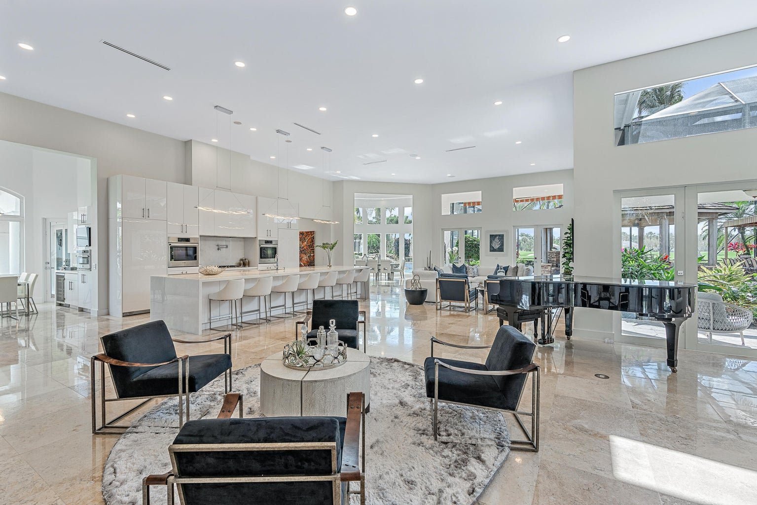 Commanding three oversized lots overlooking the 18th hole of the Jack Nicklaus-designed Legend course, the Egret Point Estate is a sprawling masterpiece of contemporary magnificence. The objective was to take an already prestigious residence and execute a complete “cosmetic overhaul,” transforming it into an all-white, minimalist dream that emphasizes the sheer volume of its 10,700 living square feet.