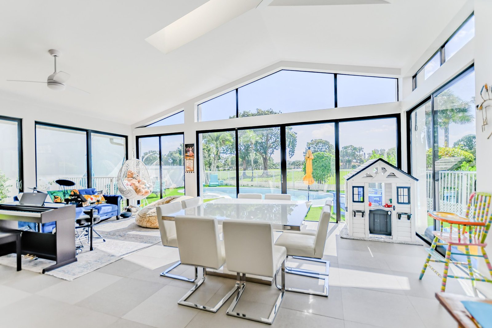 Occupying a premium lot with expansive lake and golf course views, the Touchstone Sanctuary was reimagined to blend “smart” modern convenience with a sleek, minimalist aesthetic. The objective was to maximize the home’s exterior footprint with a 2024-generation pool and hot tub suite while updating the interior to reflect the “clean-line” architectural style that defines the Palazzo brand.